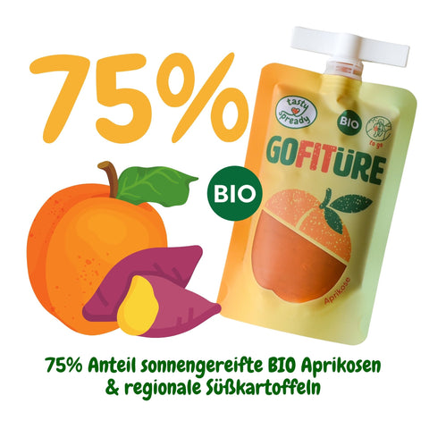 GOFITÜRE Fruchtaufstrich enthält weniger vom Schlechten und dafür mehr vom Guten. Das heisst bei uns: 50% weniger Zucker als herkömmliche Konfitüren, mehr echte Früchte und sogar 25% Gemüse. Darum dürfen wir unsere Fruchtaufstriche nicht Konfitüre nennen.