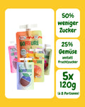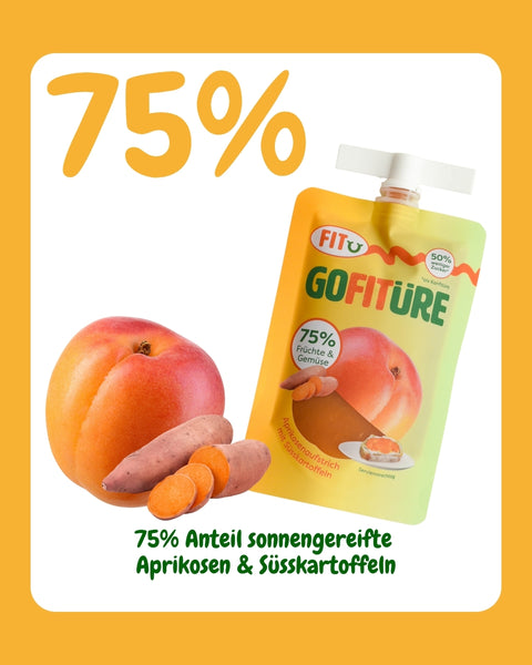 GOFITÜRE Fruchtaufstrich enthält 50% weniger Zucker als herkömmliche Konfitüren, mehr sonnengereifte Früchte und sogar 25% verstecktes Gemüse. Darum dürfen wir unsere Fruchtaufstriche nicht Konfitüre nennen.